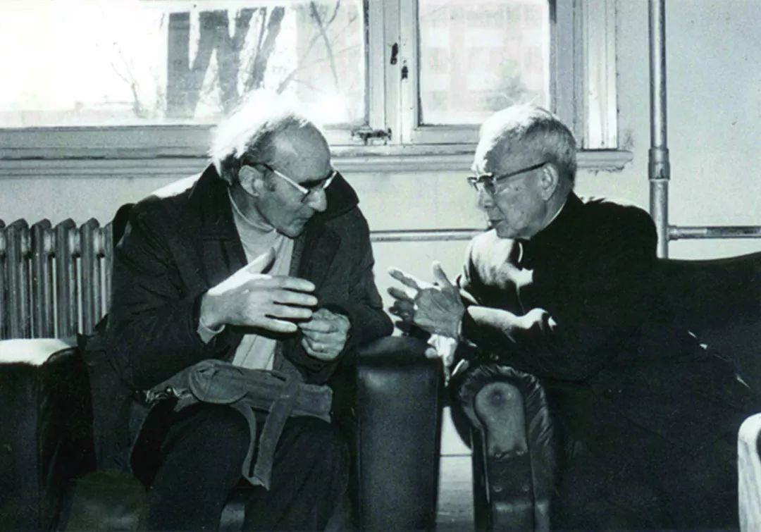 1982年,杨遵仪和王鸿祯(右1)、郝诒纯(左2)、杨式溥(左1),4位古生物学家讨论团队建设问题。