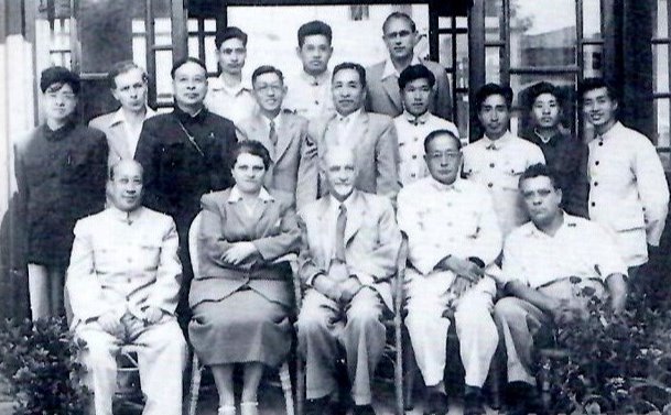 1956年,参加长江三峡工程地质考察和鉴定的中苏专家合影。图中有袁复礼(前排右二)、候德封(前排左一)、冯景兰(中排左三)、任美锷(中排左四)、李承三(中排左五)等