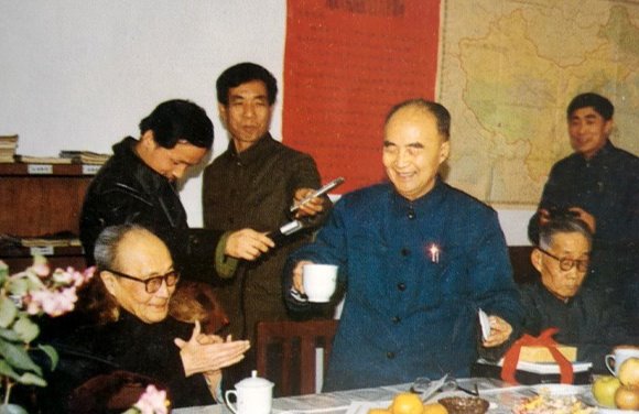 袁复礼90诞辰庆祝会上,黄汲清代表中国地质学会致词后,举杯“祝师长寿敬一盅”