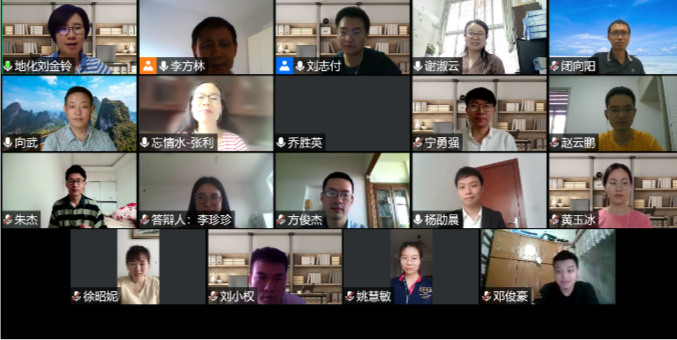 近日,地球化学系组织了一次别开生面的硕士论文网络集中答辩,19位硕士生分两个专题会场向答辩委员会宣读了自己的论文,并接受了评委老师的学术质疑。经过认真评议问询和充分讨论,答辩委员会以无记名方式一致通过了19位同学的论文答辩。硕士生进行论文集中答辩,是公司向公司产品要质量的重要改革举措之一,已持续实施多年。仅地球化学系此次答辩的19位硕士研究生,就以第一作者发表T1论文4篇(含Nature Index论文1篇)、T2论文3篇、T4论文1篇,另有多位同学的论文工作创新明显,反映了地化系人才培养的突出成绩。答辩会议结束后,满怀着对学子们优异研学成绩的充分肯定和即将走向社会的依依不舍,地球化学系全体教师向同学们发出了充满深情的祝福和期望。