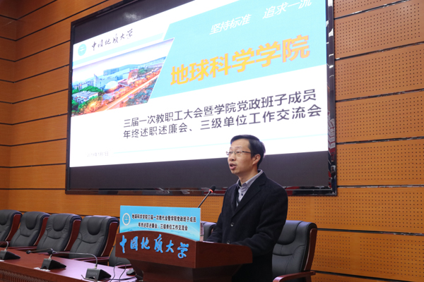 第三阶段三级单位工作交流会。各系主任、行星所和实验中心负责人,分别介绍2018年各单位取得的成效,存在的问题和2019年的工作设想。
