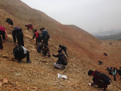 图1 2014级地质学基地班同学参加古生物学野外教学活动照片