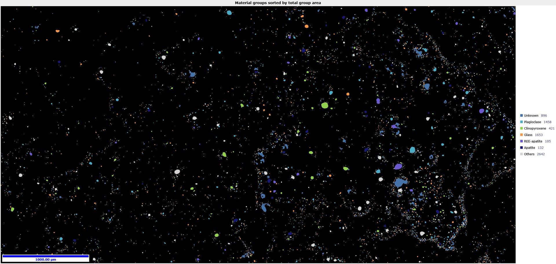 图2 对6mm×3mm范围内7307个月壤颗粒矿物组成和分布的重建结果(不同颜色代表不同的矿物)