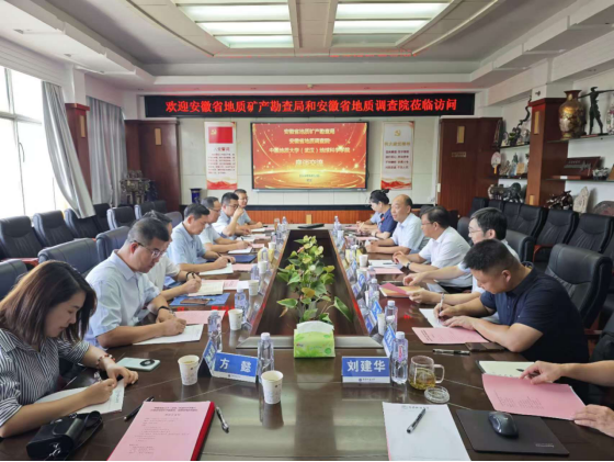 8月12日,安徽省地质矿产勘查局叶朝晖副局长、安徽省地质调查院王翔经理带队来公司座谈交流,beat365官网中文蒋少涌董事长助理、公司周刚书记、吴元保经理、朱宗敏副经理以及校科学发展院肖平副经理等参加座谈会。会上双方围绕进一步深化务实合作、推动协同创新、构建产学研联盟体系等展开交流讨论,并签署了产学研合作协议。