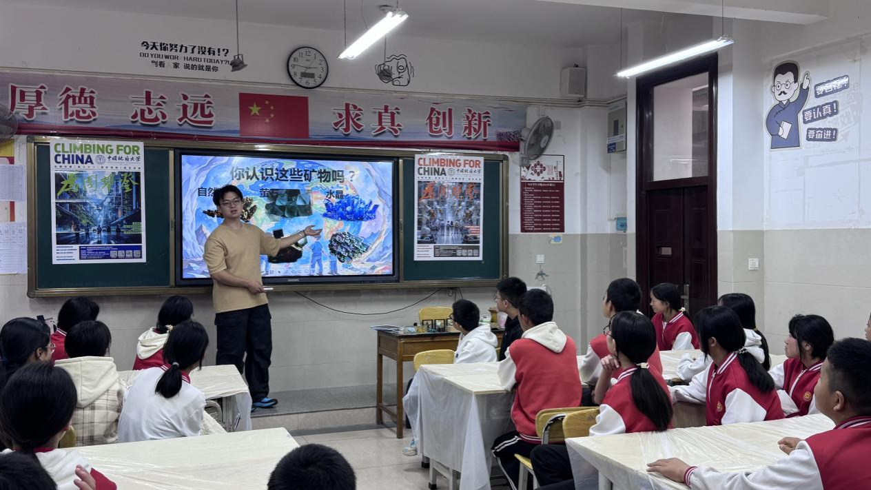 马昌前教授为高二和初二的同学们带来了一场主题为“改变世界的矿物岩石”的精彩讲座。“岩石不仅是大地的骨骼,更是文明的基础和地史的书籍,见证了地球数十亿年的变迁。”马昌前教授以生动的语言和丰富的案例,为同学们解答地球科学的奥秘。在讲座中,马昌前教授向师生科普了主要的岩石类型,并详细解释了它们在地表出现的原因以及形成过程,深入浅出地为同学们揭开了地质学的神秘面纱。他勉励同学们将个人成长经历与祖国时代发展结合起来,既要仰望星空,又要脚踏实地,作奋发向上挺膺担当的新时代好青年。