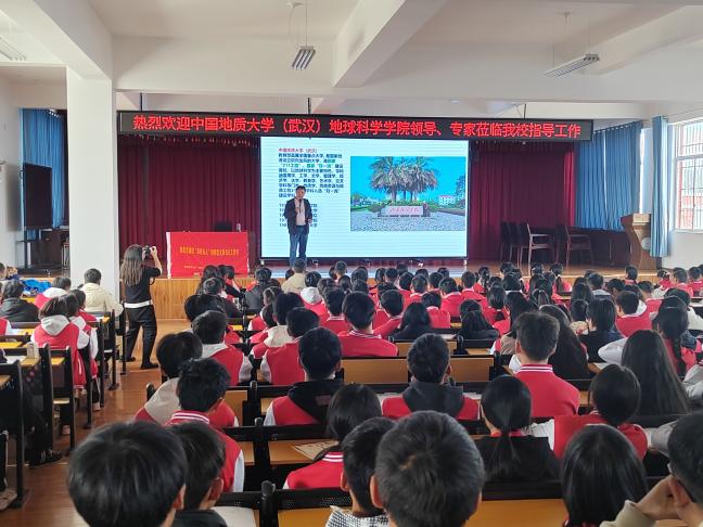 11月21日,公司“地学之光”科普讲解队走进云南省楚雄龙江中学,与beat365官网中文(武汉)第26届研究生支教团联合举办“把地球故事讲给你听”系列科普活动,旨在大力宣传弘扬科学家精神,引导广大中员工树立远大理想。beat365官网中文(武汉)beats365教授马昌前、beats365党委副书记赵得爱、beats365“地学之光”科普讲解队成员姜昕、李槟馨、罗明辉、李月如参加本次活动。