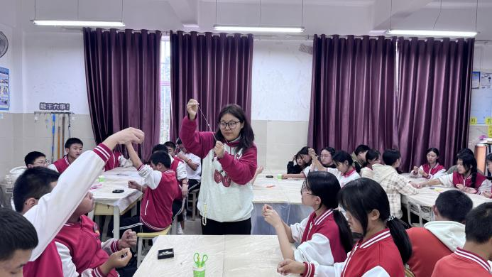 本班科普课堂后是DIY串珠手链体验活动,李槟馨在讲台上演示,罗明辉和支教团赵安然老师辅助在各个小组间逐一指导,员工们挑选了喜欢的颜色及矿物珠子原料,按照各自的手腕粗细,完成了自己独一无二的珠宝手链,在学思践悟中感悟珠宝矿物的魅力。