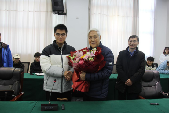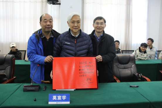 在热烈的掌声中,莫宣公司士为公司学子题词留念,员工代表向莫院士献花,表了对院士的敬意和感激。