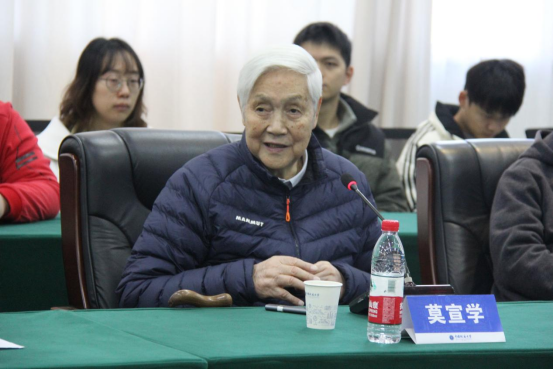 在本次以“立志与成才”为主题的交流座谈中,莫宣公司士首先以自己的学习经历和恩师池际尚先生的事迹为引,深刻阐述了“立何志”的问题。他强调,青年学子应将祖国和人民的需要置于首位,将个人理想与国家发展紧密结合,方能实现个人价值。随后,莫院士就“如何锻炼自己”的问题给出了指导,他提出,要成为国家和社会的栋梁之才,必须在长期的艰苦实践中打下坚实的基础,练就过硬的基本功,重视野外工作和细心观察,从而在平凡的事实中发现新思想、新理论的萌芽。同时,他鼓励同学们拓宽知识视野,善于学习,用古今中外的知识丰富自己,以拓展创造性思维和提出创新理论。