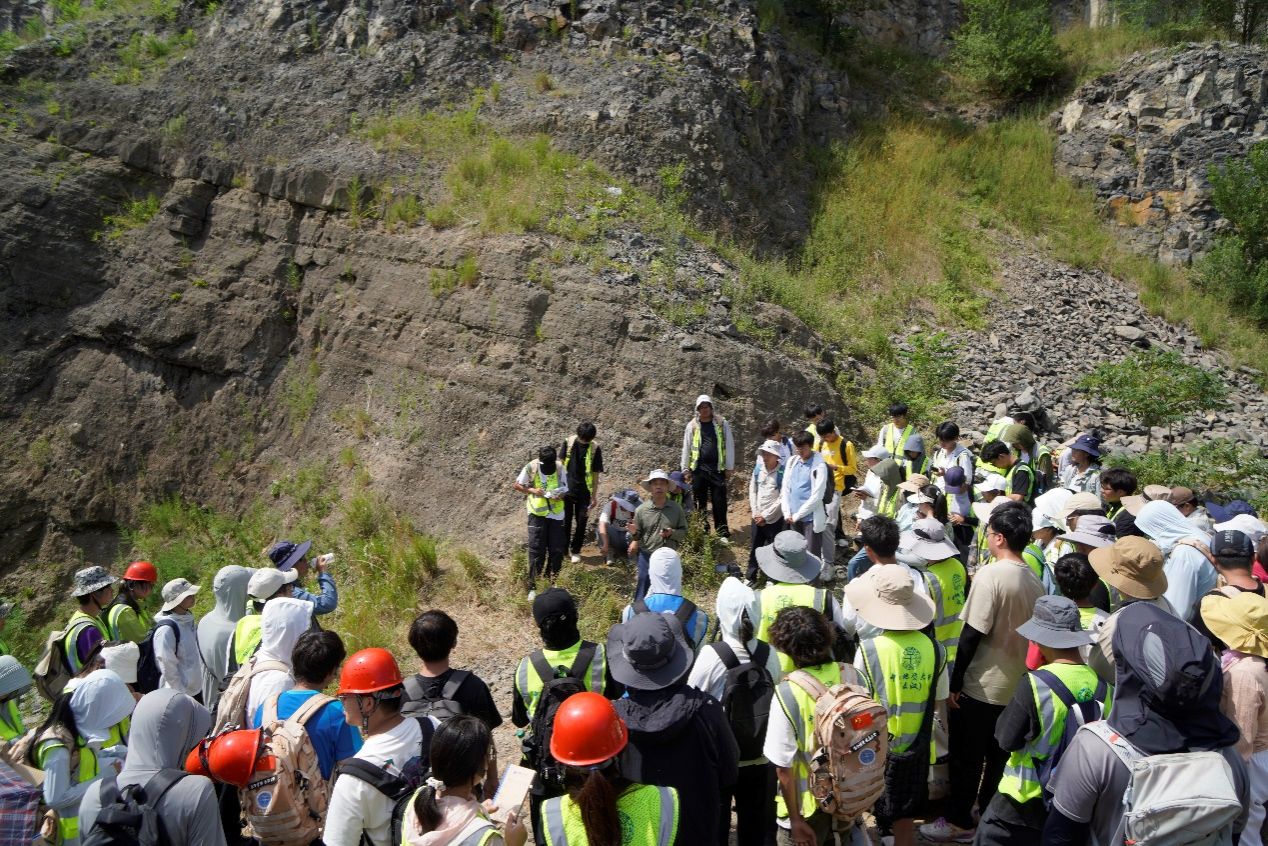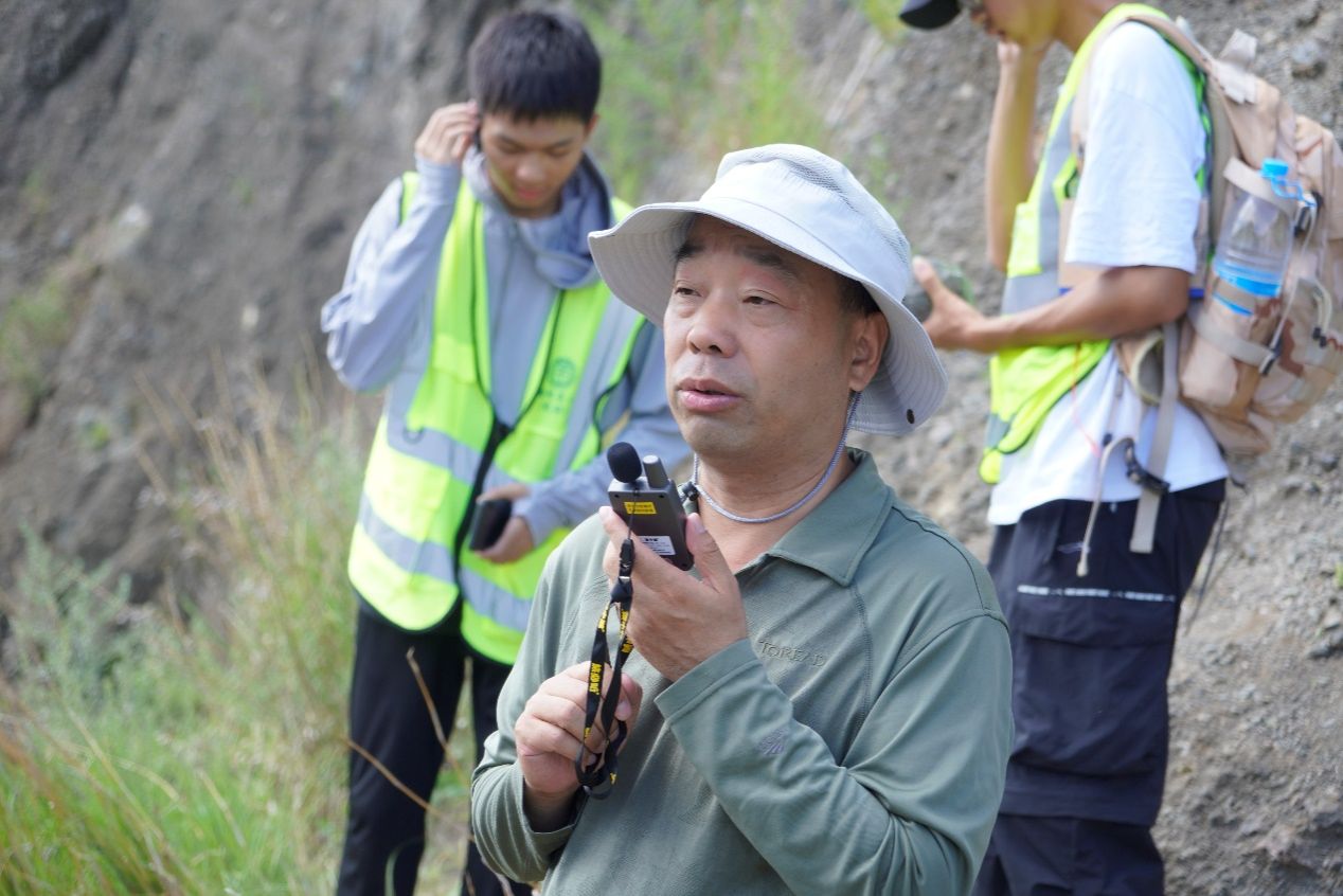 25日上午,院领导全程参与福山马山火山实习路线,指导野外地质教学。经理吴元保通过解析玄武岩的矿物组成、构造特征及橄榄岩包体等关键要素,揭示岩浆源区性质差异,引导员工思考地幔包体对深部地幔组成的指示意义,现场回答同学们的提问。他勉励同学们:“普通人观山水只见风景,地质人读山水需解其韵——要透过现象洞察地球演化的密码,领悟地质现象背后的科学真谛。”