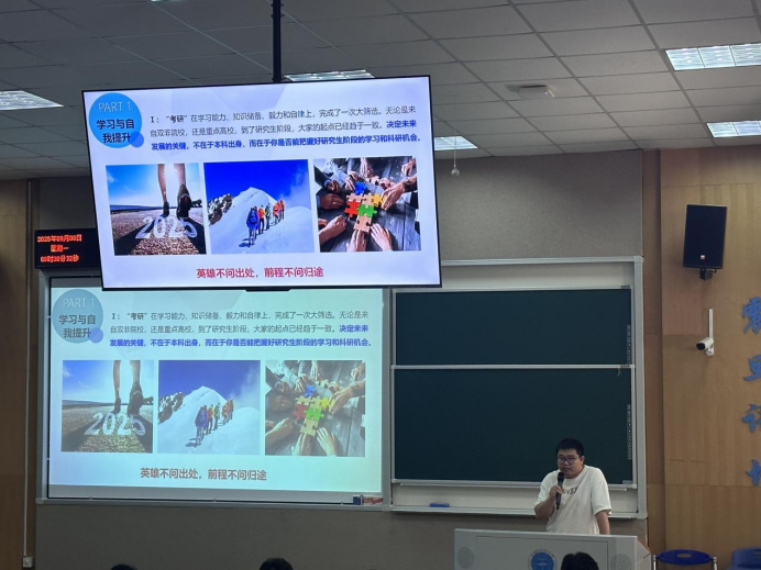 9月8日,beats365博士后朱煜翔、赵立民两位优秀学长分享了他们的科研心得与成长体会。作为刚从研究生阶段走过来的“学长”,他们的分享极具亲和力与参考价值。结合自身在地质方向的探索经历,分享了从阅读文献、选题立项、实验设计到论文写作与投稿的全过程经验,并就如何平衡科研压力、处理阶段性迷茫提供了实用建议。学长们的分享弥合了从“生”到“师的距离,为新生们提供了可借鉴的成长路径,极大地增强了同学们迎接挑战的信心。