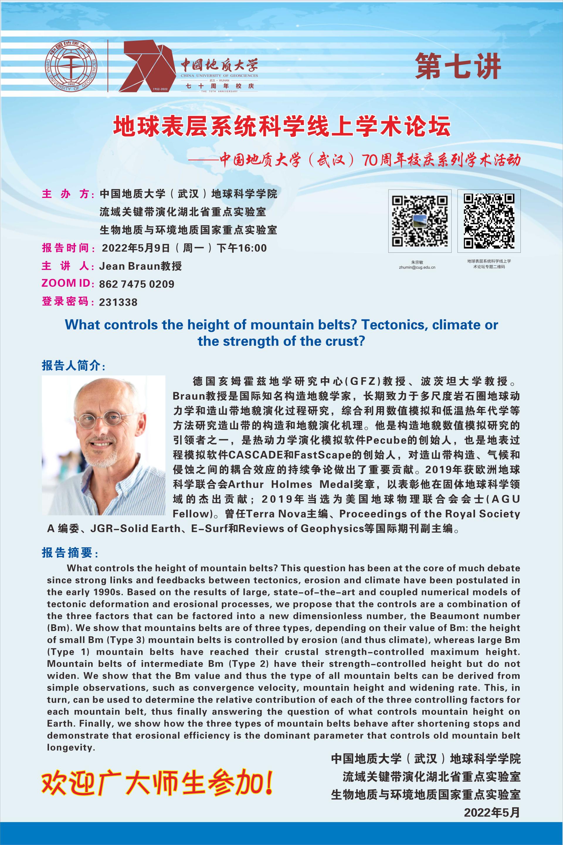 【5月9日】校庆系列学术活动---地球表层系统科学论坛(第7期):Jean Braun教授