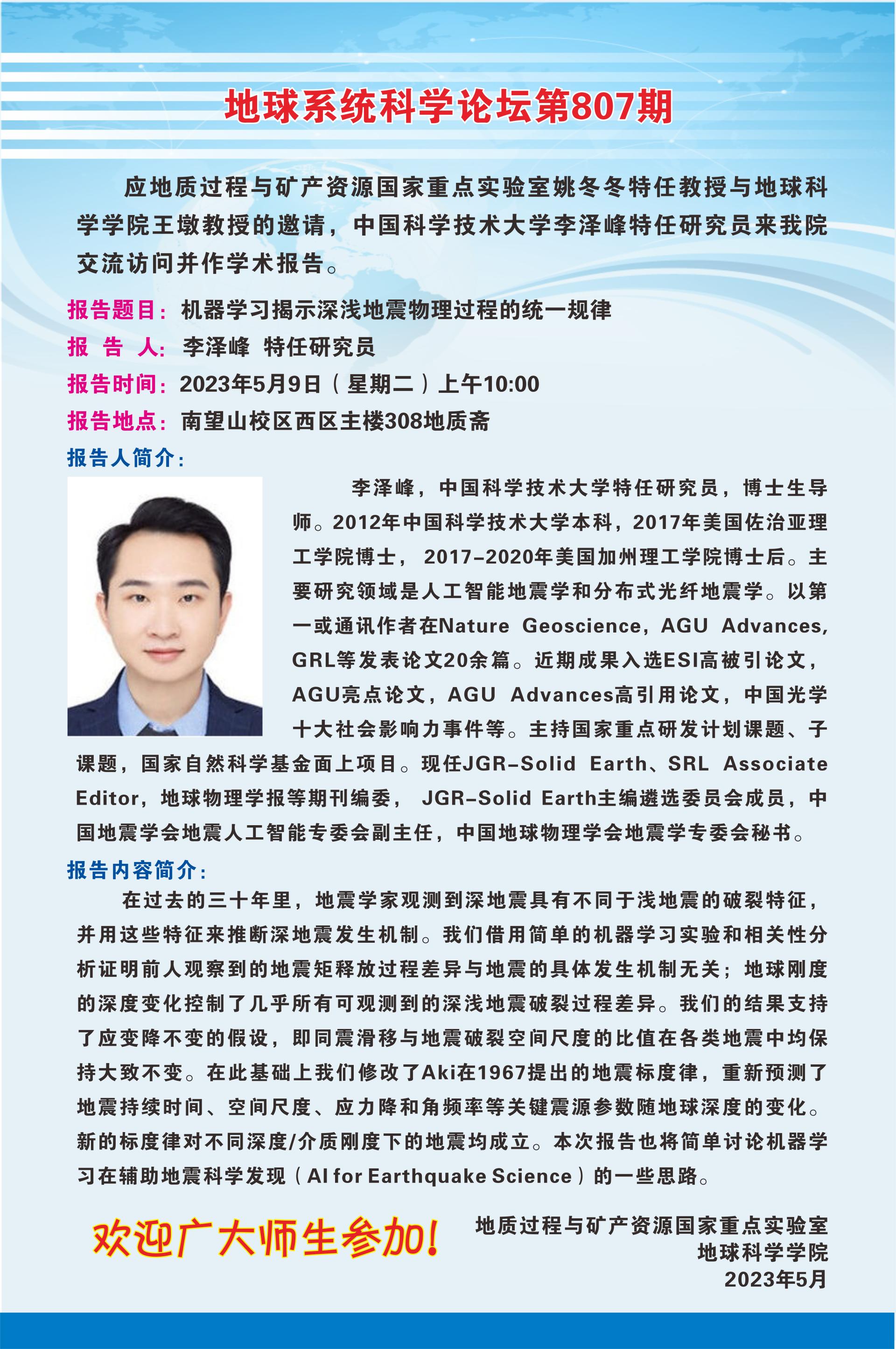 【5月9日】beats365统科学论坛(第807期)-李泽峰 特任研究员