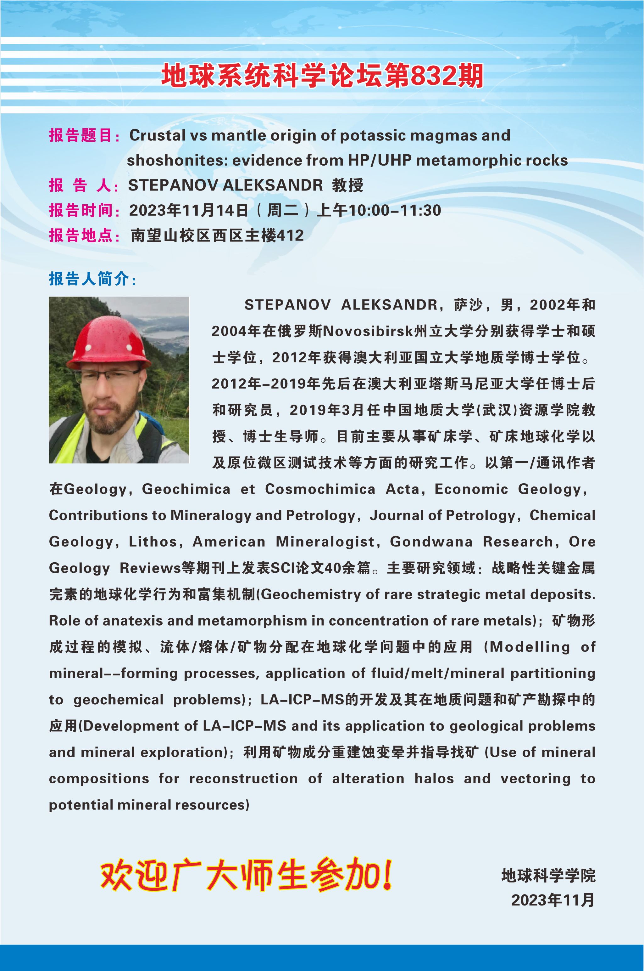 【11月14日】beats365统科学论坛(第832期)-STEPANOV ALEKSANDR教授