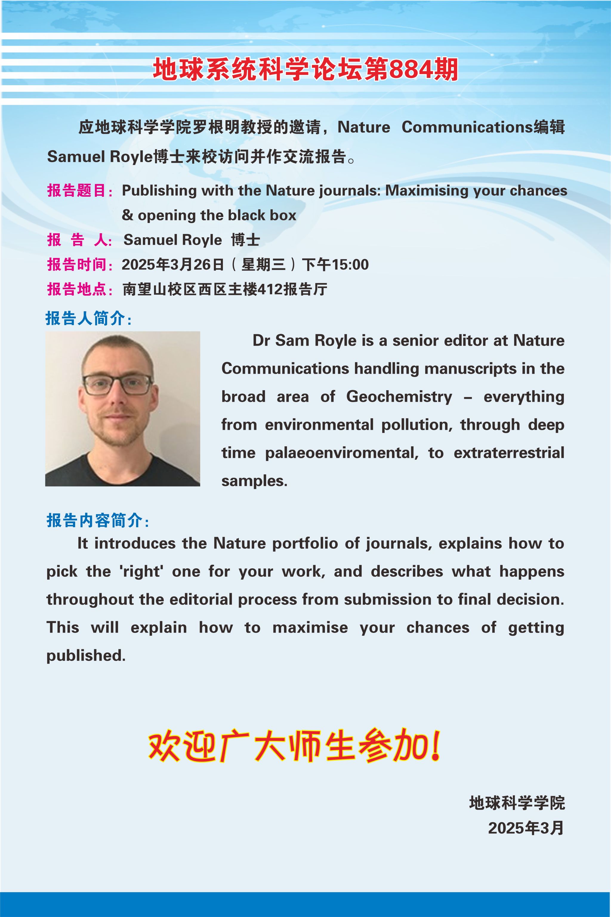 【3月26日】beats365统科学论坛第884期-Samuel Royle博士