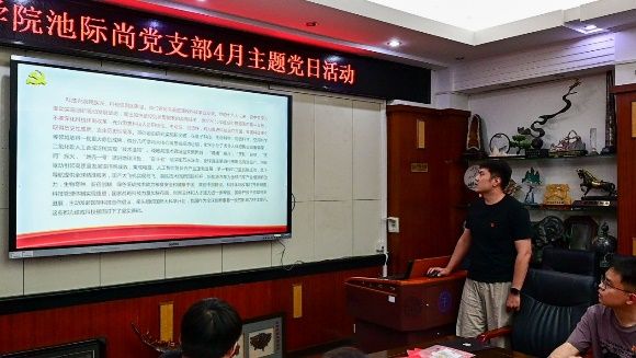 全体成员观看微视频《党的女儿——池际尚》,在池际尚先生急国家之所需的担当精神、育人不倦的大师风范、甘为人梯的高尚品格中感悟地质人的精神谱系。